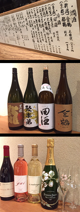 東長(純米) 田酒(特別純米) 喜楽長(純米吟醸) 大黒正宗(原酒) 聚楽第(純米大吟醸) 池月(純米大吟醸) 黒龍(大吟醸) 勝駒(純米吟醸) 〆張鶴 純(純米吟醸) 久保田(萬寿)